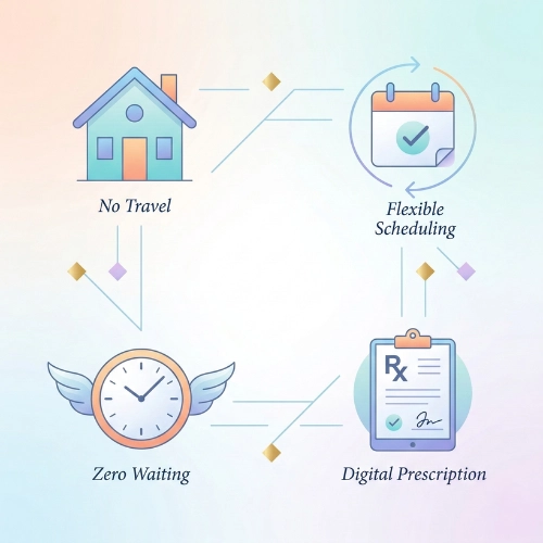 Expert dermatological care and personalized treatment plans for your skin and hair concerns, delivered securely via high-quality video consultation.